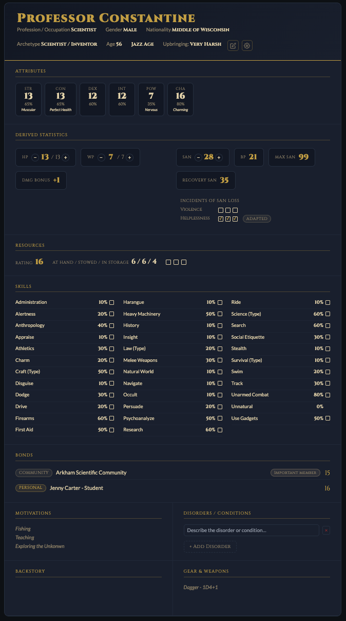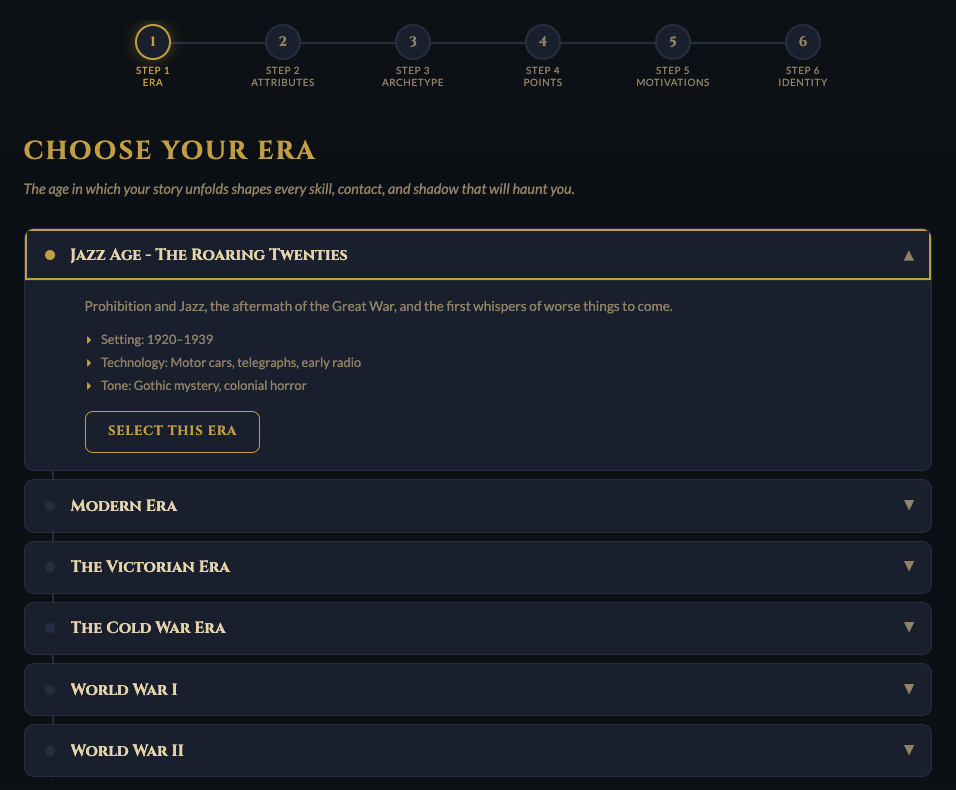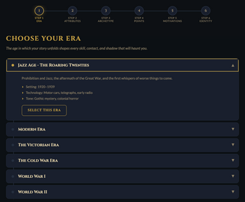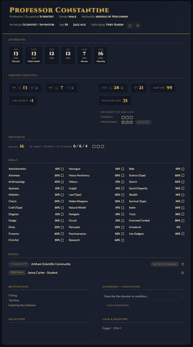 Cthulhu Forever is a Character Generator for the TTRPG Cthulhu Eternal